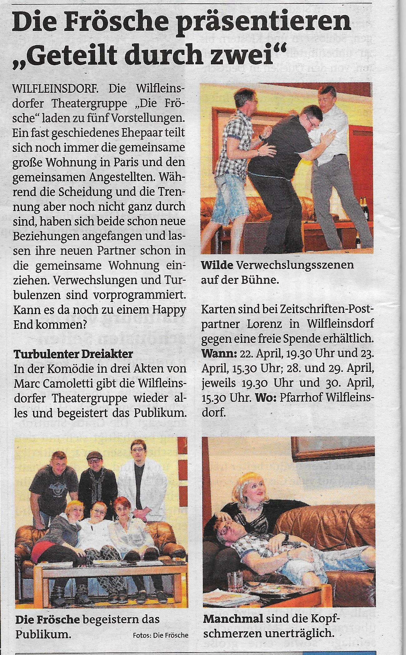 Die Theatergruppe "Die Frösche" lädt herzlich ein zum heurigen Theaterstück